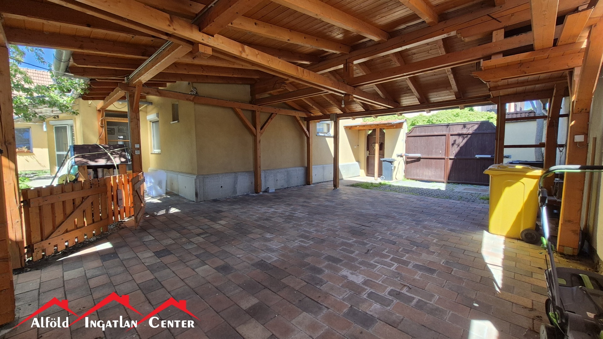 Az ingatlan udvara jól kihasználható, családbarát kialakítású, fedett gyermek játszórész,
