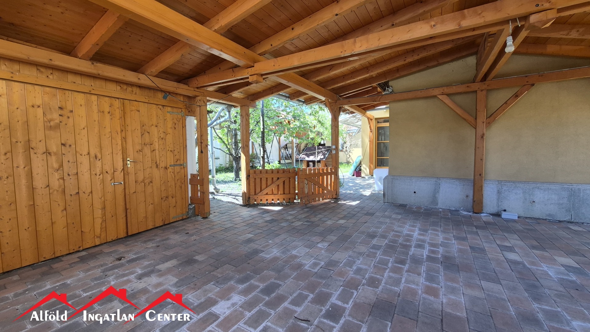 kültéri angol wc és zuhanyzó. 1 állásos garázs, fedett beálló 2 autó számára.