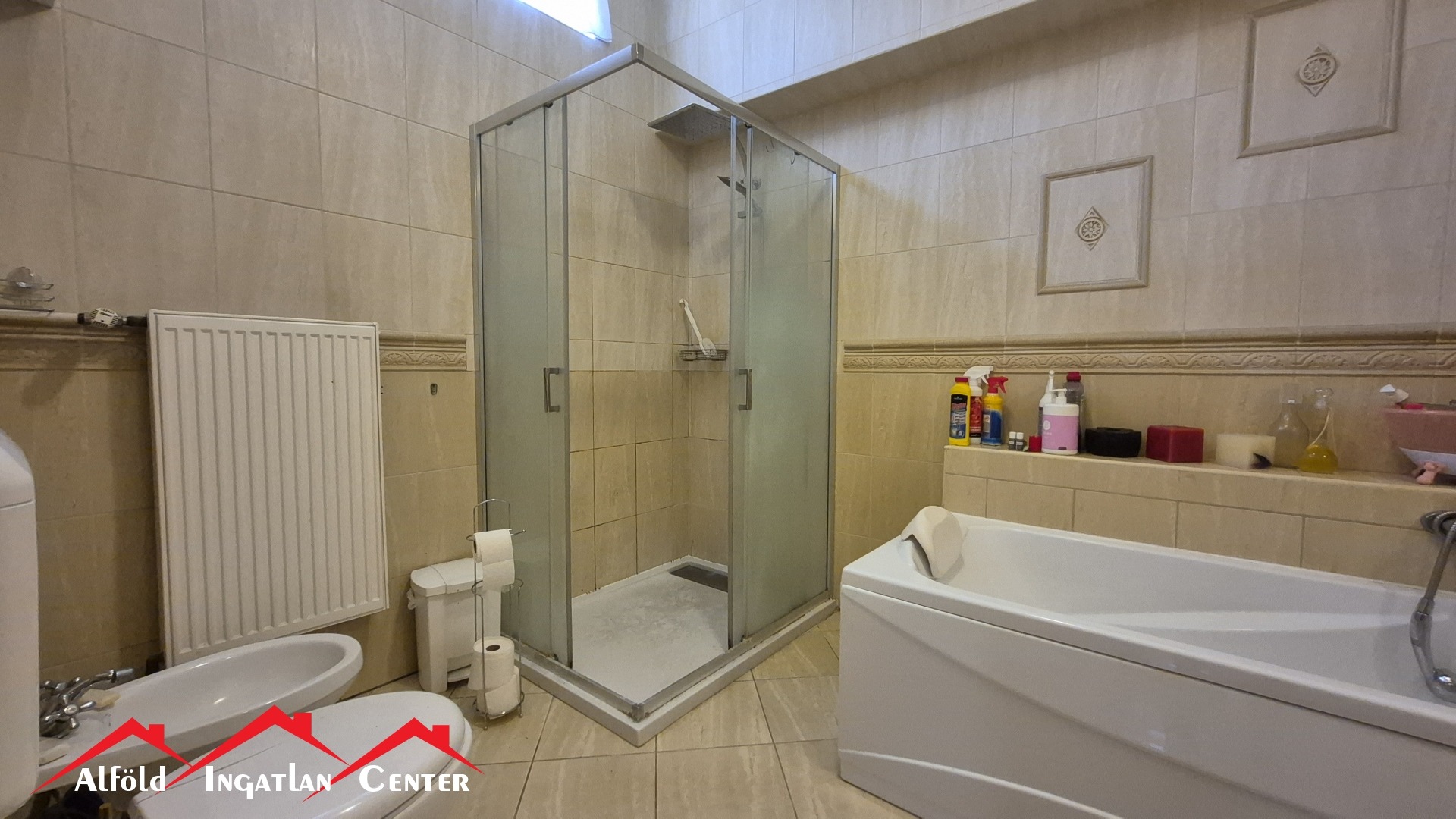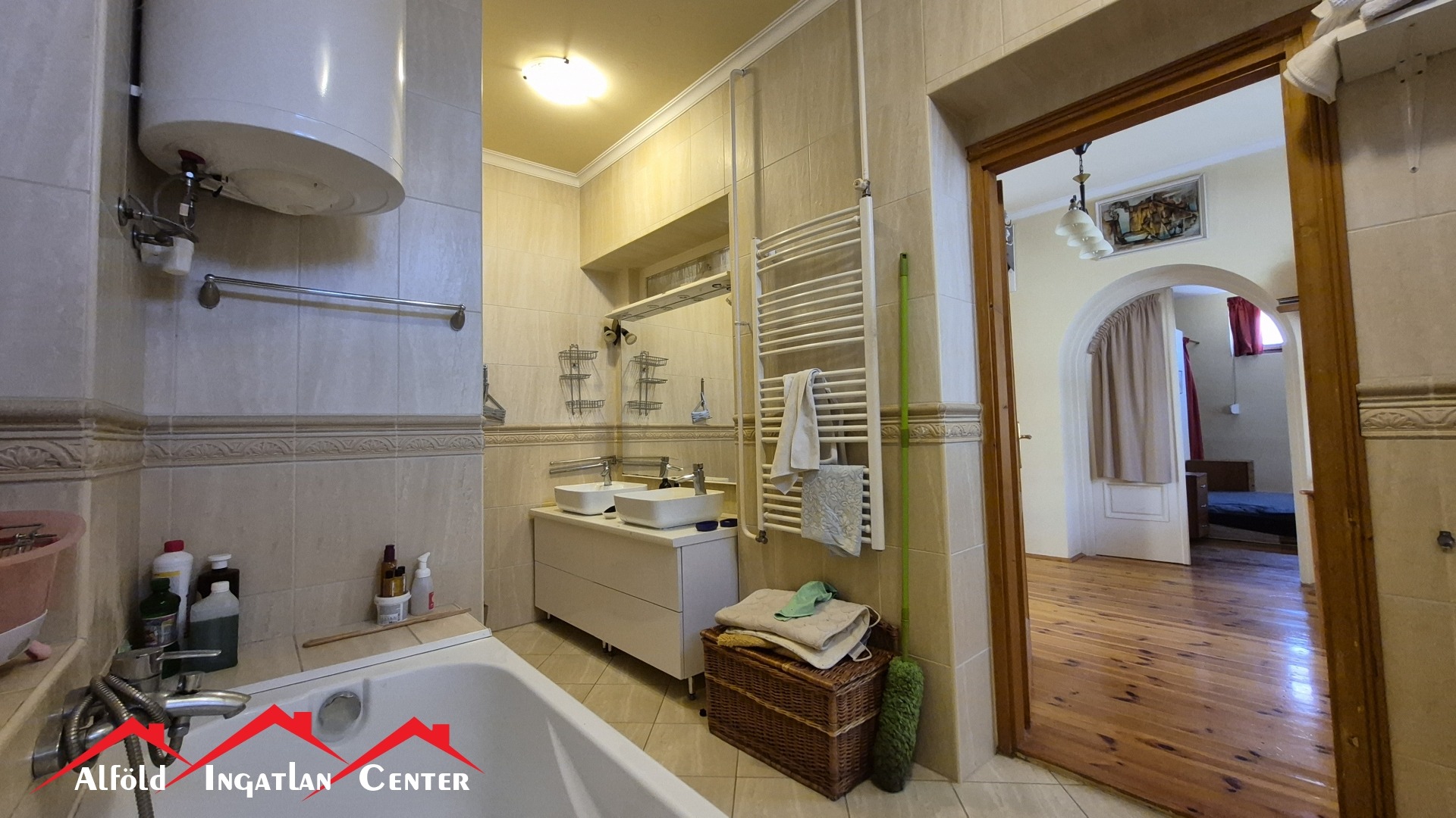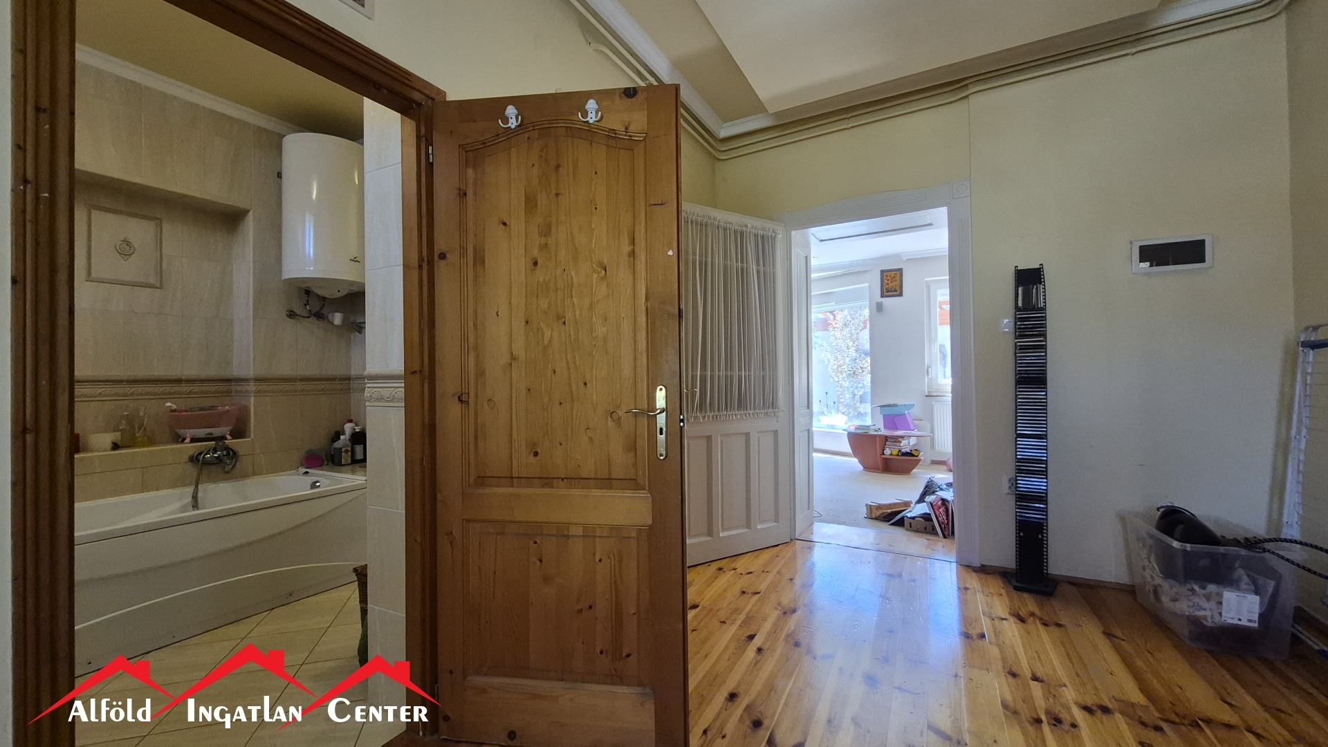 - Kb. 130 m² lakótér, polgári stílus, nagy belmagasság, tágas terek, cirkó kazán biztosítja a fűtést, klíma gondoskodik a hűtésről, hangulatos kandalló a nappaliban, fa és műanyag nyílászárók, redőnyökkel, beépített szekrények és gépesített konyha a vételár részét képezik.