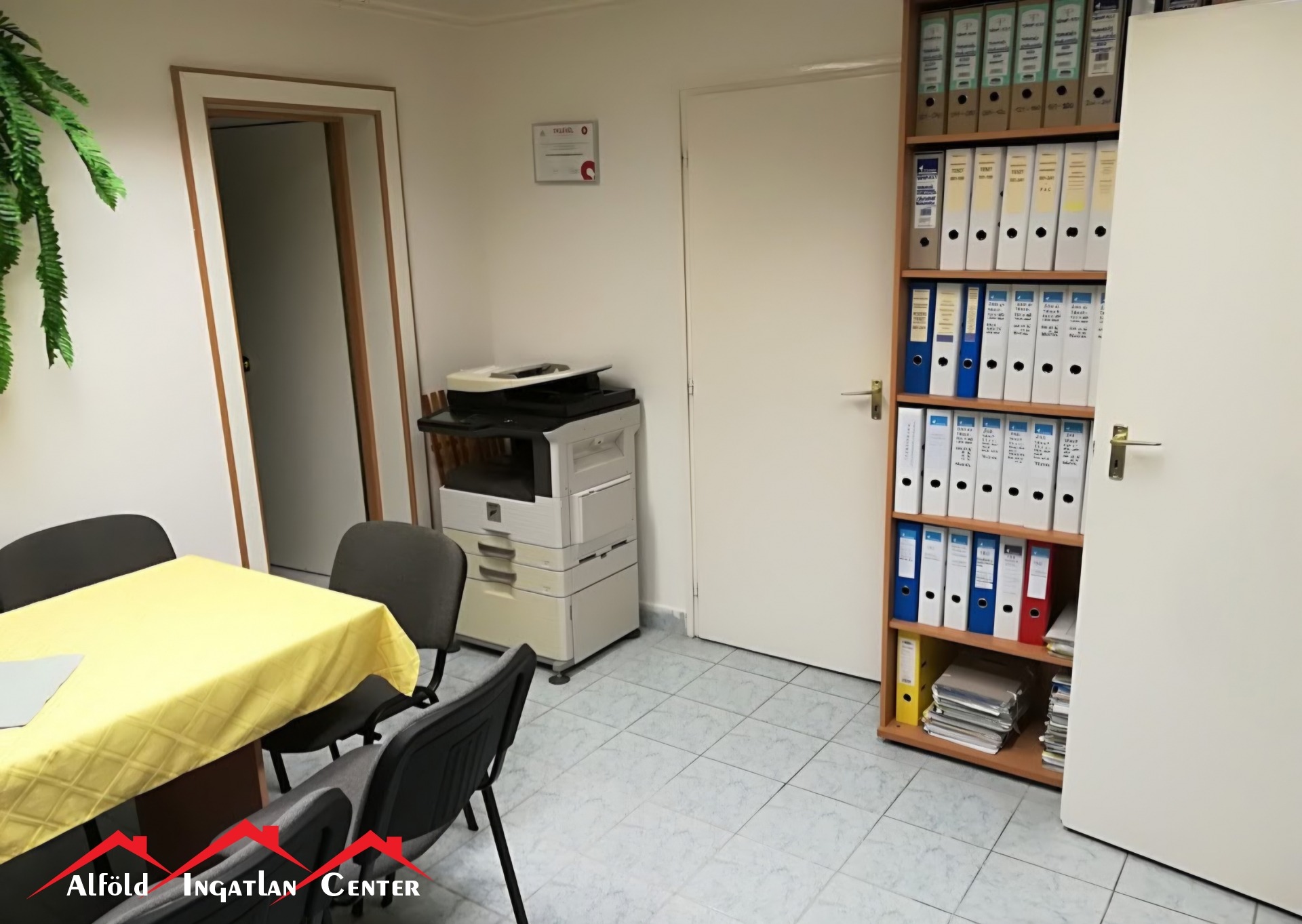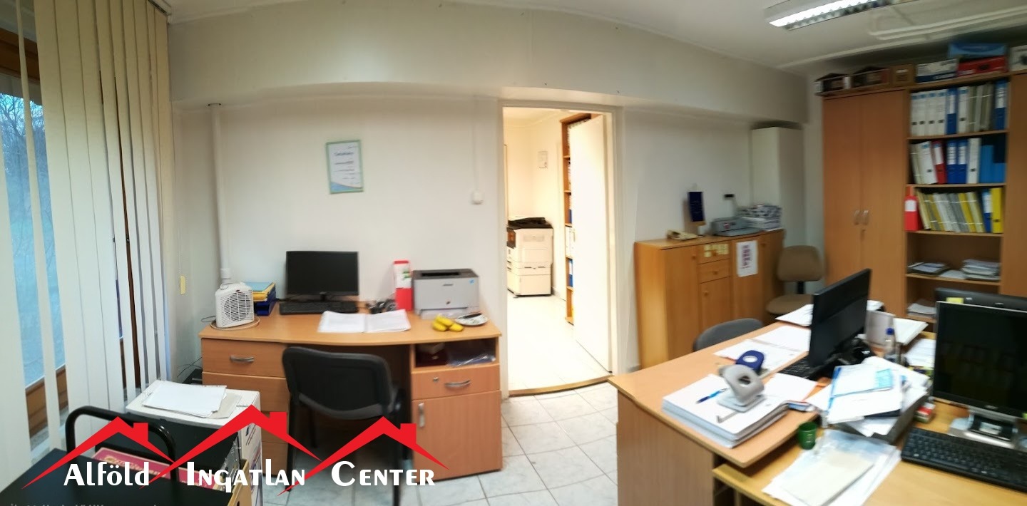 - az utcáról egy irodahelyiségbe lépünk, szemben található a WC és zuhanyzó, jobbra egy tágasabb iroda, balra egy kisebb iroda, amelyből a teakonyha nyílik.