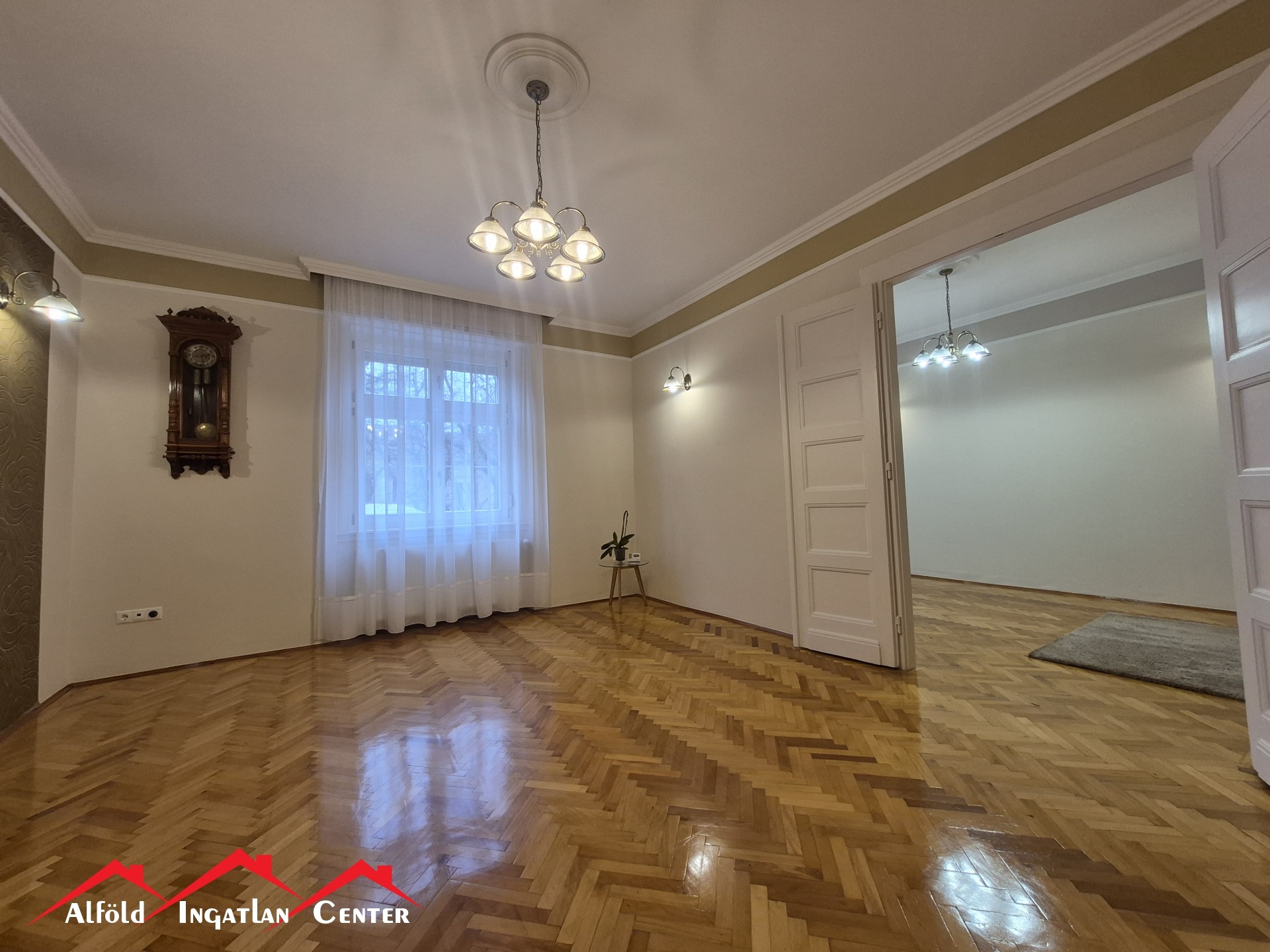 Békéscsaba egyik legpatinásabb környékén, a Szent István téren, körfolyosós, liftes polgári ház első emeletén kiadó egy frissen felújított, tágas, nagy belmagasságú, egész nap napfényben úszó, luxus érzetű nagypolgári lakás.