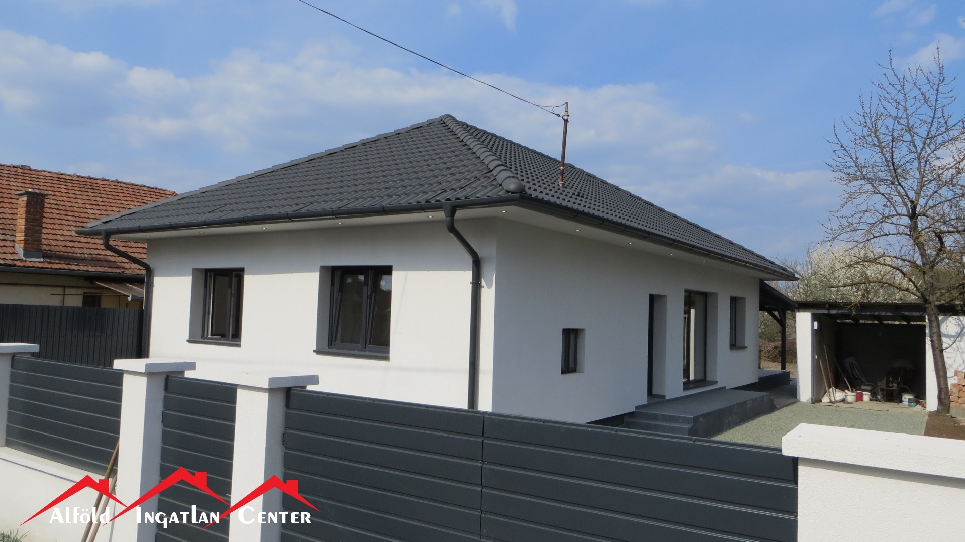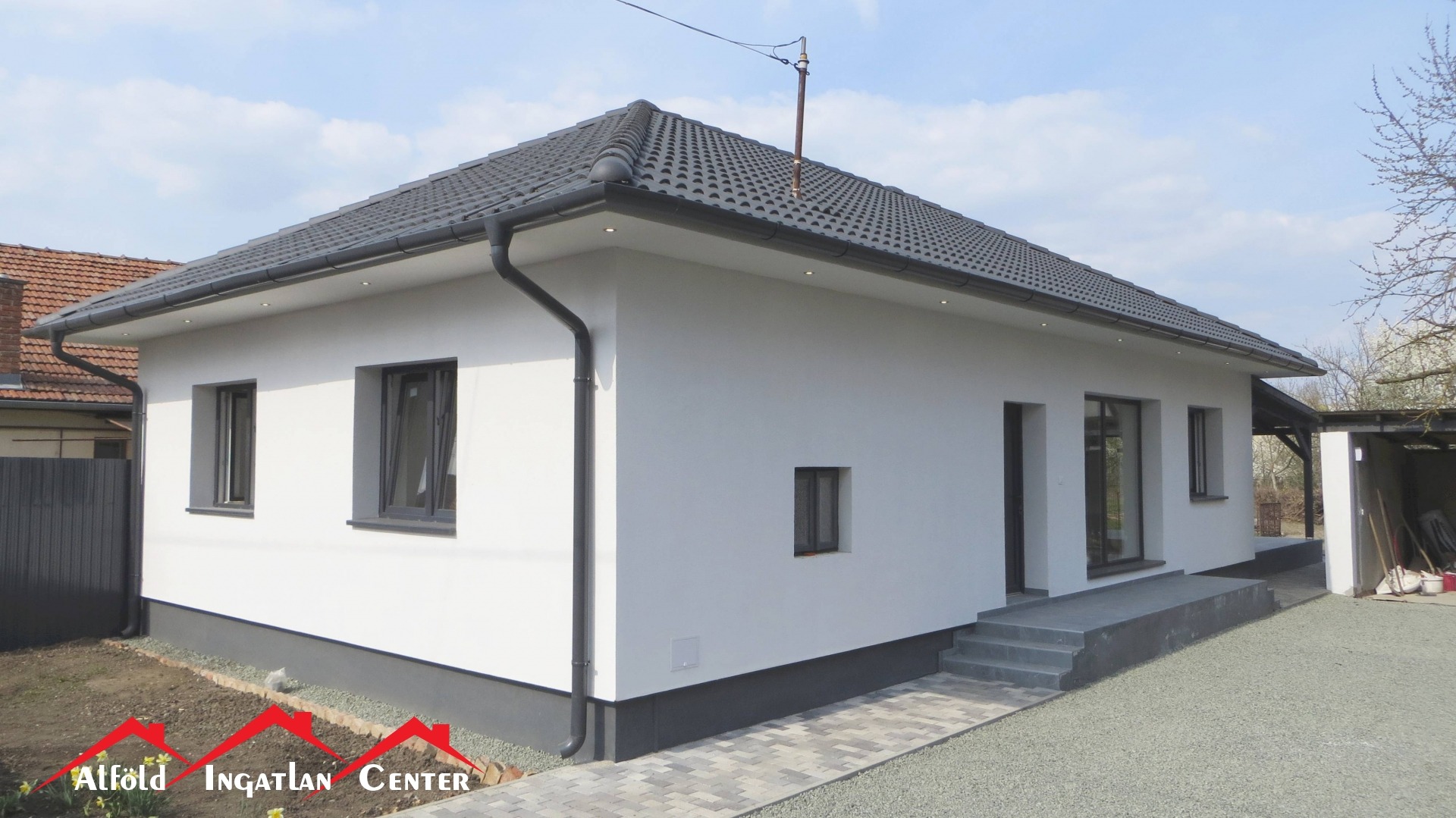 A 30 m²-es fedett terasz ideális helyszíne lehet családi és baráti összejöveteleknek, miközben a 100%-ban közművesített, 570 m²-es telek megfelelő méretet biztosít a kert kialakításához vagy kényelmes udvari élethez. A telken egy garázs is található, az utcafront pedig új, esztétikus kerítést és kaput kapott, ami tovább erősíti az ingatlan rendezett, igényes megjelenését.